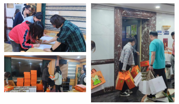 果粒饱满硕大的阳光玫瑰葡萄,宛如红宝石般的软籽石榴,美味的中秋月饼。百余份满载幸福的中秋节礼品陆续被发放到每位员工手中,大家脸上都洋溢着幸福的笑容!