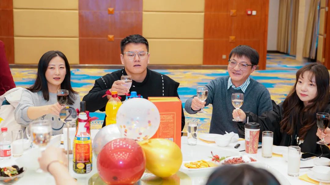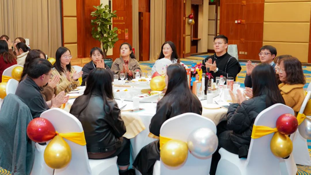 年会晚宴上,大家品尝着一道道美味佳肴,分享着激情与欢笑,气氛温馨而热烈。