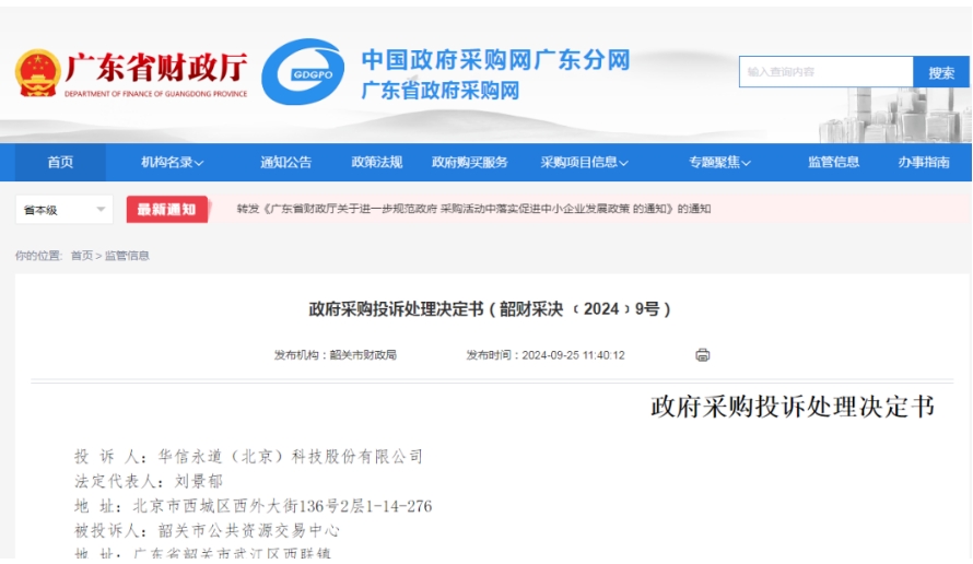 政府采购投诉处理决定书(韶财采决 ﹝2024﹞9号)地 址:北京市西城区西外大街136号2层1-14-276投诉人因对韶关市公共资源交易中心就“韶关市新一代智慧公积金信息系统建设项目(项目编号:SG24GZ024)”(以下称本项目)作出的质疑答复不满,向本机关提起投诉。本机关于2024年8月14日依法受理,现已审查终结。投诉人请求:1、对中标方首都信息发展股份有限公司投标文件中所提供的11项涉嫌严重造假的知识产权证书(计算机软件著作权证书)逐一进行最低限度的真实性核验,并给出核验过程及结果的书面材料(如中国版权保护中心官网截图证明或权威鉴定机构结果证明)2、对应招标文件评分项项目团队技术实力第4条“拟投入的项目团队其他成员获得过工业和信息化部教育与考试中心《信息技术应用创新考试评价证书》中的中级或以上证书的,每提供一个证书,得1分,本小项最高得2分”,其人员是否同样不具备该资质,也应进行最低限度的真实性核验。投诉人称:根据该采购项目的招标文件,需要对投标人的知识产权资质进行评分(评分标准高达16分),现有中标方并未取得相关评分要求中的知识产权资质,提交虚假资质文件,最终得分为84.8分,涉嫌严重造假。根据《政府采购质疑和投诉办法》,我司己将上述情形反馈至代理机构韶关市公共资源交易中心处,代理机构未进行最低程度的形式核查。韶关市公共资源交易中心称:我中心于2024年7月24日收到华信永道(北京)科技股份有限公司递交的关于韶关市新一代智慧公积金信息系统建设项目的质疑函,其中,与投诉事项相关的质疑事项为“中标公告中首都信息发展股份有限公司商务部分和技术部分得分总分84.8分,得分明显过高,经天眼查等权威渠道查询首都发展股份有限公司无招标文件中要求的相关知识产权证书(计算机软件著作权证书)。”。1.根据财政部国库司在留言(留言编号:0484-3675225)的答复“政府采购相关法律法规并未禁止代理机构基于民事关系就质疑事项向相关供应商核实情况,但采购代理机构不具有行政调查权。采购代理机构可以根据相关供应商提交的材料在法定期限内作出质疑答复。”,我中心采取了函请中标人回应、组织原评标委员会论证、核对档案资料等措施对该质疑事项进行核实。综合以上核实情况,我中心于2024年8月1日对质疑函进行了书面答复。2.投诉书副本第五点的“2.对应招标文件评分项目团队技术实力第4条……其人员是否同样不具备该资质,也应进行最低限度的真实性核验……”未曾在华信永道(北京)科技股份有限公司所递交的质疑函内提及。首都信息发展股份有限公司称:1.投诉书提供的材料与事实不符,涉嫌伪造证据,不足于信。天眼查搜索我公司名称后,在“知识产权”模块-“软件著作权”中首页即出现带有“数据中台”字眼证书。2.“天眼查”等并不是知识产权证书查验核实的官方渠道。3.投诉书请求对我公司著作权证书进行核验。经核查,中国版权保护中心需要注册才能使用相关信息,在其注册用户协议有如下提示:“七、免责1、本网站对服务之及时性、安全性、全面性和准确性不作担保。本网站从注册用户及用户处取得的各顶信息数据…本网站无须对此数据信息的准确性承担任何责任和后果。”。4.投诉人请求的事项2超出已质疑事项的范围。5.我们认为投诉人企图通过恶意投诉干涉中标结果、妨碍项目单位建设、造成项目迟延,我公司保留追究相关法律责任的权利。6.我公司在投标文件中涉及的商业秘密应受保护。7.我公司将严格按照招标要求及投标文件承诺,自愿接受采购单位(采购代理机构)的检查核验、配合提供相关证明材料(如需),证明符合《中华人民共和国政府采购法》规定的供应商基本资格条件。“韶关市新一代智慧公积金信息系统建设项目(项目编号:SG24GZ024)”预算金额886.81万元,采购方式为公开招标。2024年6月11日,代理机构发布该项目招标公告。6月28日,代理机构发布该项目第一次更正公告。7月2日,代理机构发布该项目第二次更正公告。7月19日,本项目开标、评标;7月23日,代理机构发布中标公告,中标供应商为首都信息发展股份有限公司(下称首都信息公司)。7月24日,华信永道(北京)科技股份有限公司(下称华信永道<北京>公司)提出质疑;8月1日,代理机构答复质疑;8月12日,华信公司提起投诉。本项目尚未签订政府采购合同。以上事实,有华信永道<北京>公司提交的投诉材料,韶关市公共资源交易中心、首都信息公司提交的答复材料及招标公告、招标文件等佐证。首先,本项目的《评审报告》、《中标<成交>通知书》、结果公告等证据证实,首都信息公司、华信永道(北京)公司、四川久远银海软件股份有限公司等6家供应商参与了本项目投标。该6家供应商均通过了资格性审查、符合性审查。通过详细评审,本项目评标委员会确定的中标候选人名单为:第一中标候选人:首都信息公司(评审总得分87.55)、第二中标候选人:华信永道(北京)公司(评审总得分82.04)、第三中标候选人:四川久远银海软件股份有限公司(评审总得分78.04)。2024年7月23日,韶关市公共资源交易中心向第一中标候选人首都信息公司发出《中标<成交>通知书》,确定首都信息公司为本项目中标供应商,但尚未签订政府采购合同。其次,经核查,本项目《招标文件》的技术评审因素“知识产权(16.0分)”设置的